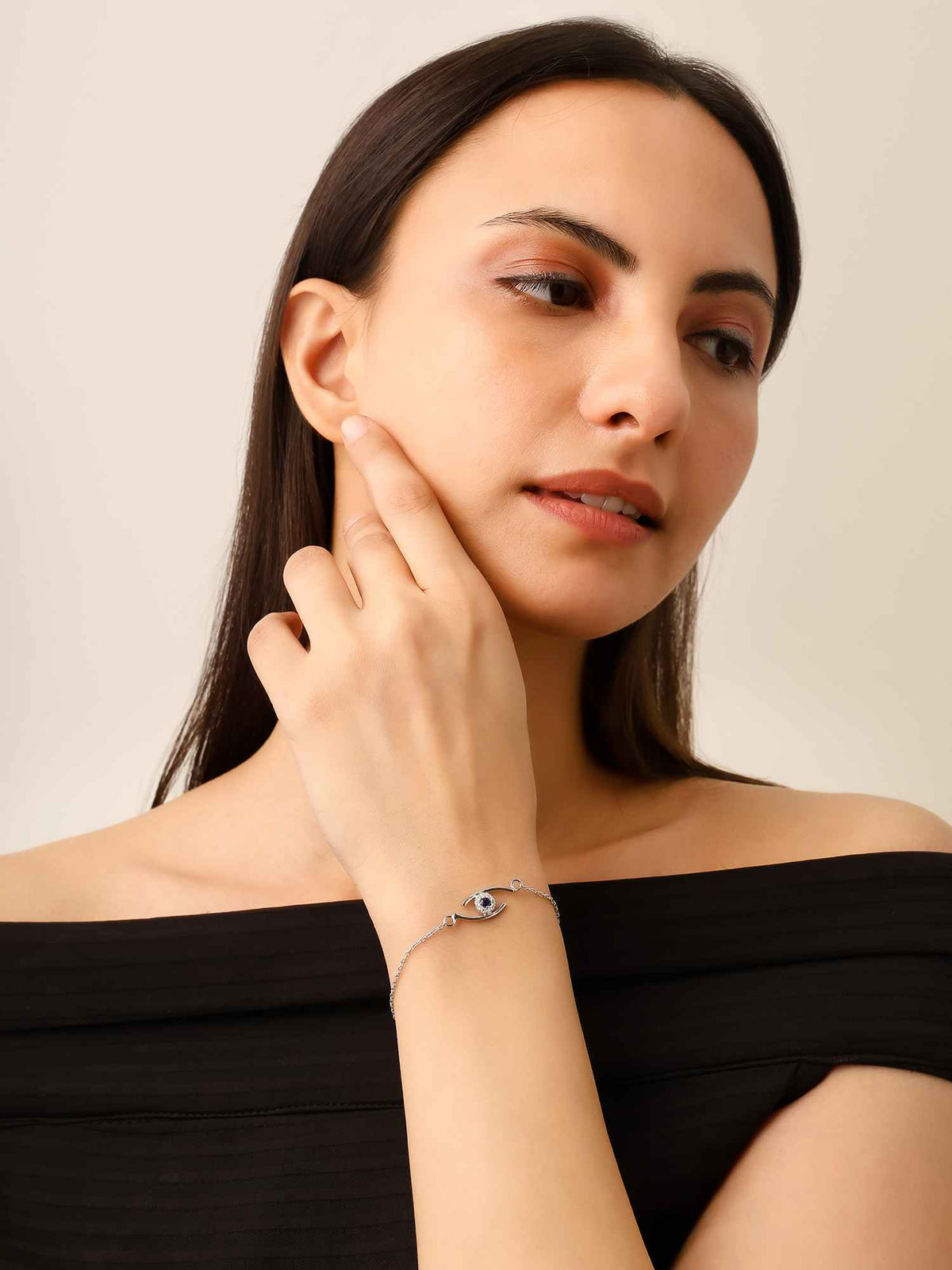 925 Silver Moissanite Diamond Evil Eye Bracelet